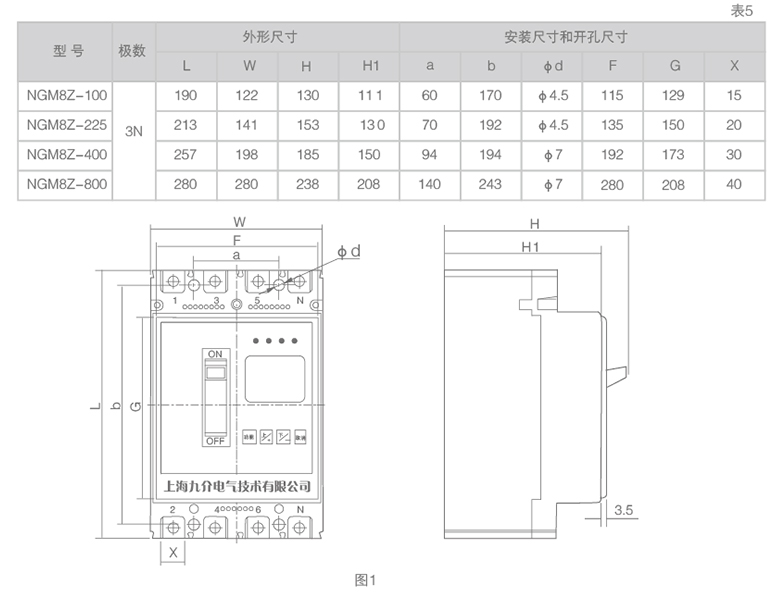 外形及安装尺寸 (见图1、表5)